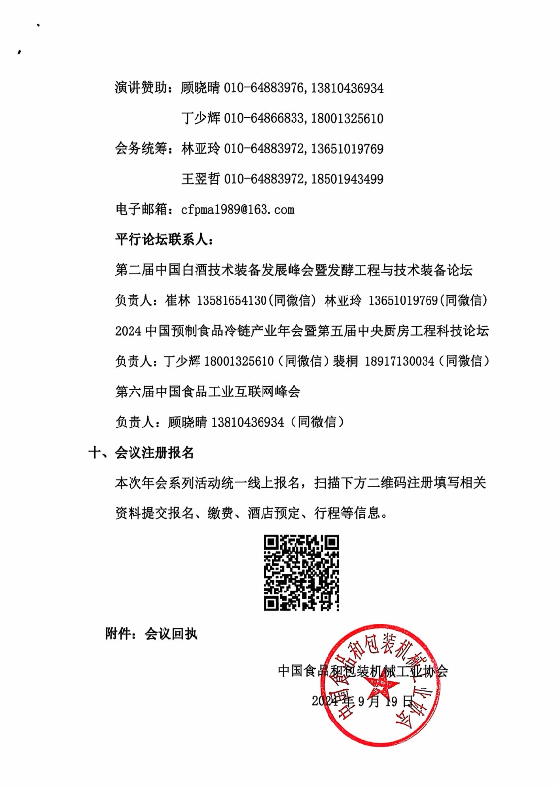 關于召開中國食品和包裝機械工業協會第八屆會員大會暨第十一屆亞洲食品裝備論壇等系列活動的通知