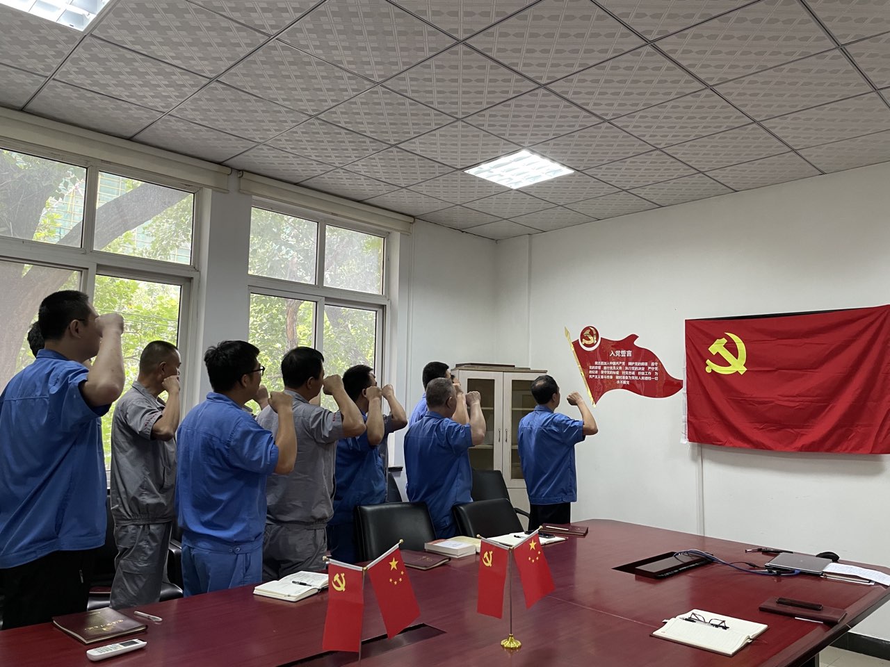 緊接著,公司全體黨員面向黨旗,在黨總支書(shū)記的帶領(lǐng)下,高舉右拳,莊嚴(yán)宣誓:“我志愿加入中國(guó)共產(chǎn)黨……”,在重溫入黨誓詞中,回憶入黨初心,強(qiáng)化使命擔(dān)當(dāng),凝聚力量,振奮人心,進(jìn)一步激發(fā)了廣大黨員干部干事創(chuàng)業(yè)的工作熱情及為實(shí)現(xiàn)中華民族偉大復(fù)興而努力奮斗的信心和決心。